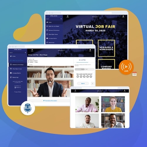 GoVirtual360 provides a third-party webinar facility that allows you to host speakers during your event that your visitors can access. Visitors can also participate in Q&A and take polls.